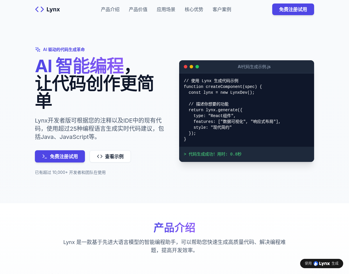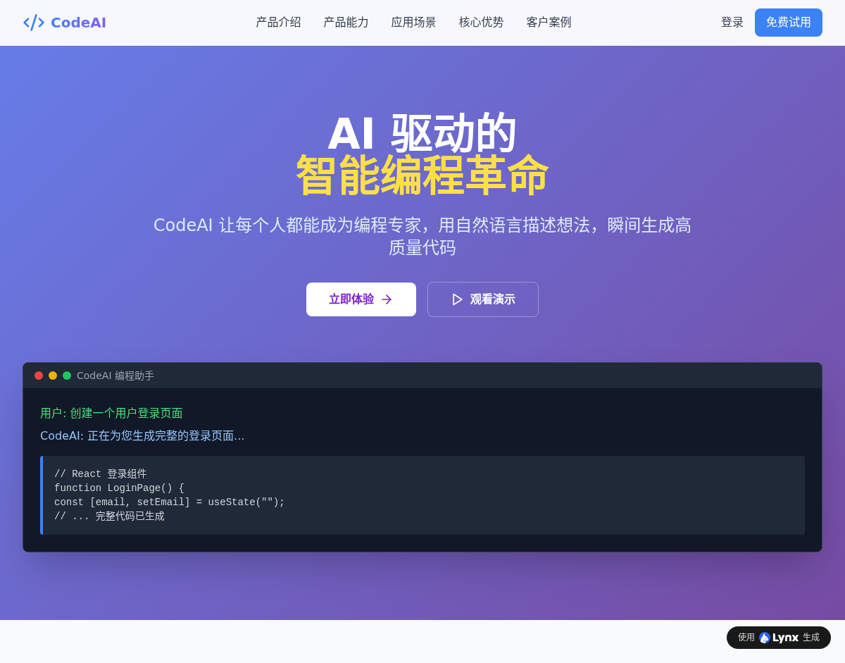 从一句话的想法开始,Lynx AI 帮您实现梦想中的应用